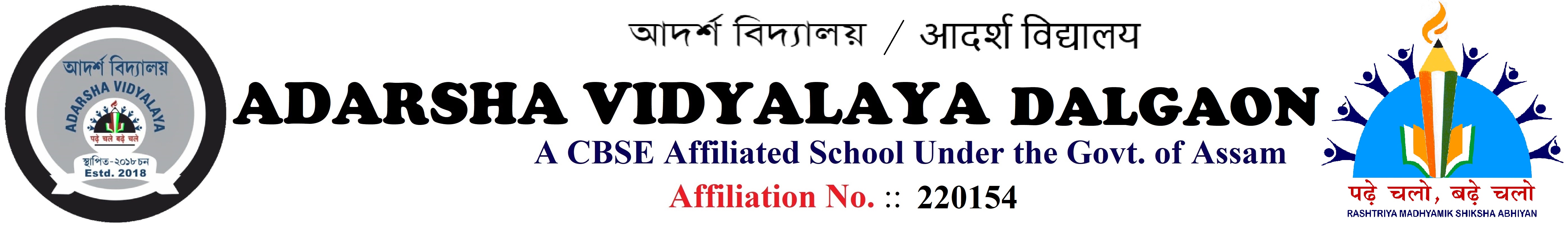 Adarsha Vidyalaya, Dalgaon, Darrang, is a co-educational Senior Secondary School affiliated to the Central Board of Secondary Education (CBSE). The school was established in the year 2018 under the aegis of RMSA, Assam. The school has been catering to the educational requirement of the children of Dalgaon, Educationally Backward Block .The people of these backward areas with uncompromising emphasis on quality education.